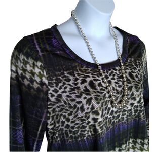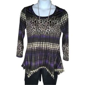 SUNNY LEIGH Petite HANKY HEM TUNIC Mixed Print Jersey Size L