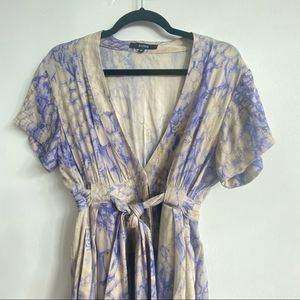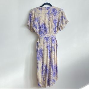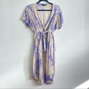 SUNO Silk Purple & Cream Water Color Snake Print Short Sleeve Plunge Neck Dress