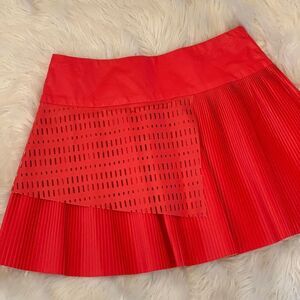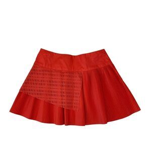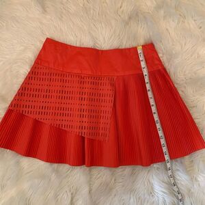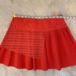 Features: cute flare skate skirt in a show stopping fun fire orange red color! Munro pleated with a layer of eyelet cut asymmetric flap in front and back.