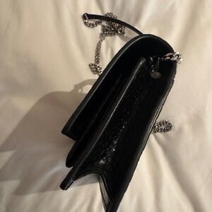 SUNSET CHAIN WALLET IN CROCODILE-EMBOSSED SHINY LEATHER