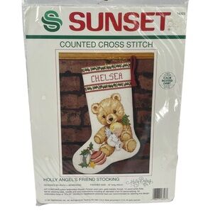 SUNSET Counted Cross Stitch Christmas Stocking Kit - Holly Angels Friend #18323