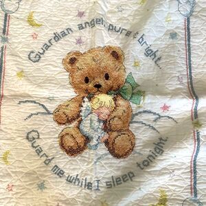 โ Style: Cross stitch teddy bear angel theme, quilted, flannel-backed