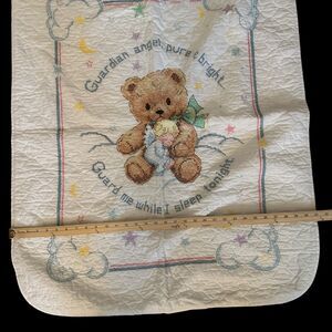 SUNSET Handmade Teddy Bear Guardian Cross Stitch Angel Flannel Back Baby Quilt