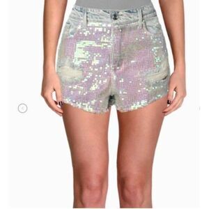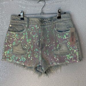 SUNSET & SPRING SEQUINED DISTRESSED DENIM SHORTS, Sz 29, NWT