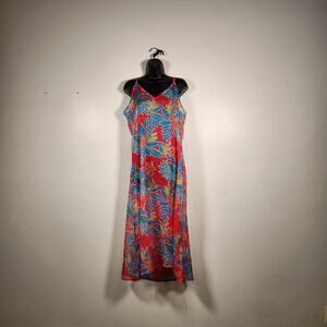 SUNSETS Tiger Lily Destination Dress Women S-M Tie Back Hi Low Sheer Maxi Floral