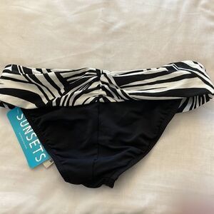 SUNSETS BLACK AND WHITE BIKINI BOTTOM. NEW WITH TAGS. SIZE IS MEDIUM. STYLE IS RIVER BEND. THE REGULAR PRICE $58