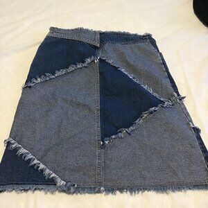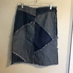 SUNSHINE Apparel Patchwork Denim Midi Skirt