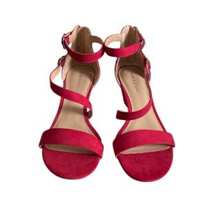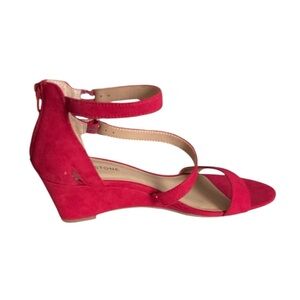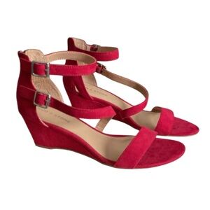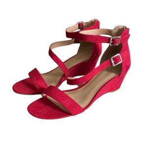 SUN+STONE Faux Suede Red Strappy Back Zip Slip Resistant Wedge Dress Sandals 10