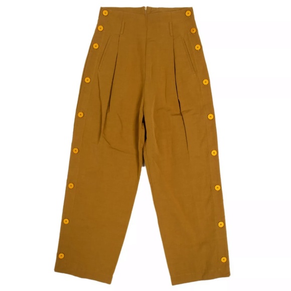 SUOLI Italy Linen Blend Pleated Front Cropped