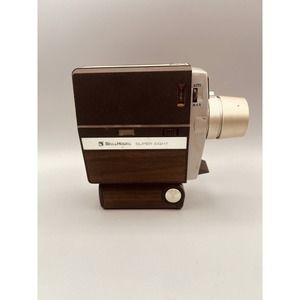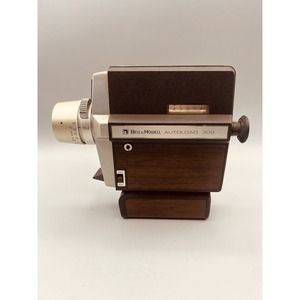 This vintage Bell and Howell Autoload 308 Super Eight movie camera, manufactured in the United States in 1968, is perfect for film enthusiasts. Its unique brown color and Super 8 film format make for a great addition to any vintage camera collection. This camera comes with tape