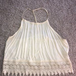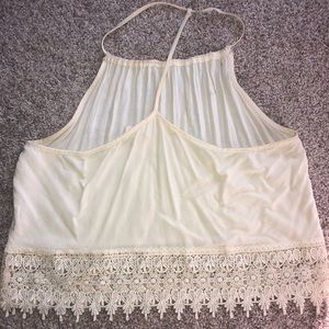 super cute, halter crop top, cream color with crochet detail on the bottom