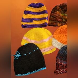 SUPER CUTE LOT OF 8 KNIT CROCHETED BEANIES ~ ONE SZ FITS MOST