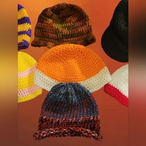 SUPER CUTE LOT OF 8 KNIT CROCHETED BEANIES ~ ONE SZ FITS MOST, VERY THICK AND WARM NEVER WORN