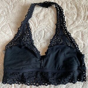 SUPER CUTE AERIE BLACK CROCHET BRALETTE HALTER TOP SAYS SIZE M BUT I BELIEVE THIS RUNS SMALL (SEE MEASURING TAPE PHOTO)