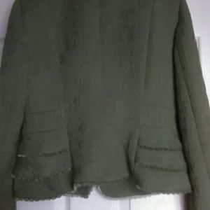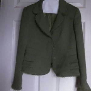 SOLD This skirt set is 56% polyester and 41% cotton. The collection is from NIPON BOUTIQUE! Pretty green..can be worn to work..meetings..church..And also the jacket is a versatile Blazer that can be worn with jeans to make it a casual outfit!!