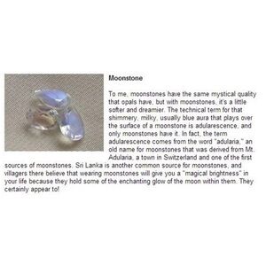 Moonstone is feminine stone and a talisman of the inward journey, taking one deep into the self to the parts of the soul left behind or forgotten, then brought to light. Moonstone is also the stone of love and is the ultimate fertility crystal. Moonstone worn during lovemaking at full moon harmonizes the body into the natural lunar cycle. Rainbow Moonstone acts as a prism, diffusing energy throughout the aura. It deflects negativity and eases emotional trauma.