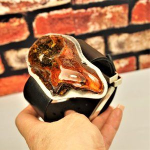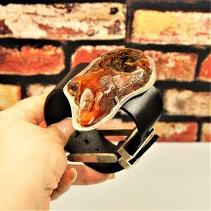SUPER HUGE AMBER STERLING LEATHER RARE UNISEX BRACELET 9 BY AMBERMODA