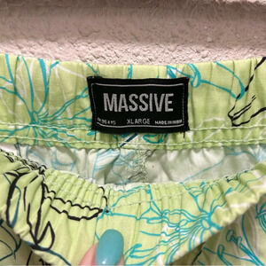 SUPER MASSIVE Green with Tropical Flowers Mens Swim Trunks XL