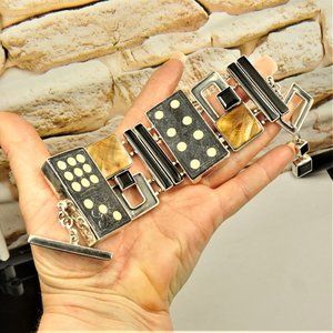 SUPER RARE HEAVY STERLING PANEL BRACELET, UNISEX GIFT, GIFT FOR MEN