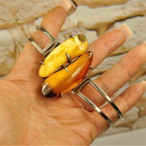 DOUBLE AMBER BRACELET. LARGE AMBER STONES. EGG YOLK AMBER. BUTTERSCOTCH AMBER. OLD ESTATE JEWELRY. RAW FREEFORM AMBER STONES.