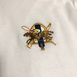 Worn once but Rare Ralph Lauren Polo with multicolored logo on left side and polo on written on right sleeve. Size XXL Custom but fit like XL.