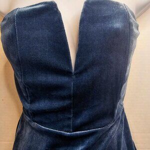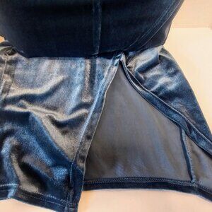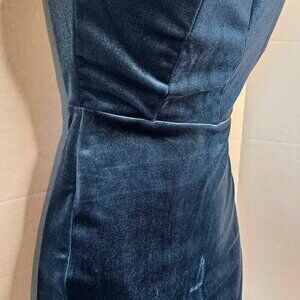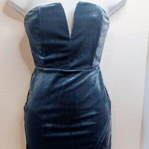 SUPERDOWN BEATRICE VELVET TUBE MINIDRESS TEAL THIGH SLIT DEEP V SZ XS ZIP BACK