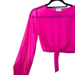 SUPERDOWN Jemma Tie Front Cropped Blouse Fuschia XS