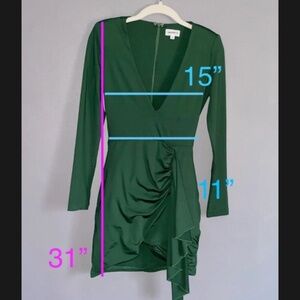 SUPERDOWN Martyna Deep V Ruffle Party Dress Emerald XS