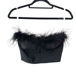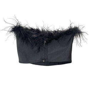 SUPERDOWN Ramona Feathered Bustier Top Black XS