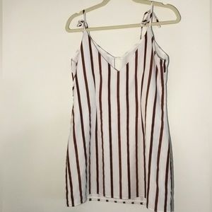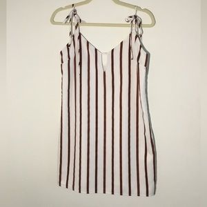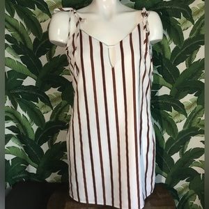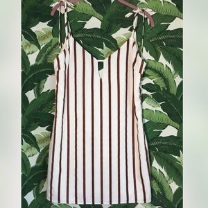 SUPERDOWN Tie Strap Mini Dress White Brown Stripes New NWT Revolve Size Medium