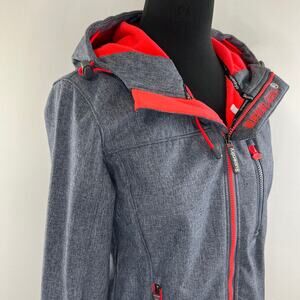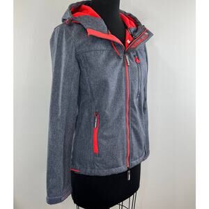 SUPERDRY Gray Original Windrtekker Hooded Soft Shell Jacket Pocket Fleece Size S