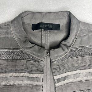 SUPERFINE Rap Ribbon Trim Jacket in Gray with Hook Closures L