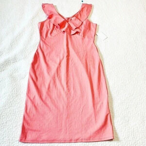 SUPERFOXX Size L V-Neck Ruffle Midi Dress in Pink Papaya NEW!