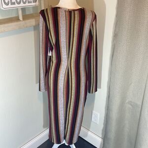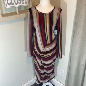 Superfoxx Striped Knit Jersey Long Sleeve Side Ruching Dress NWT