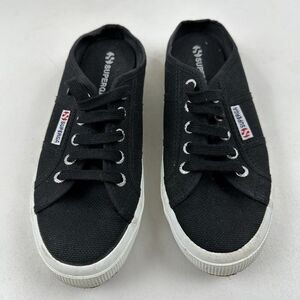 SUPERGA 2402 Black Canvas Lace/Slip On Mules Slide Sneakers Womens 7.5 Mens 6