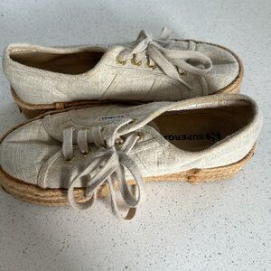 ๐ SUPERGA 2730 Womens Espadrilles Platform Classic Flat Canvas Cream Size 6๐