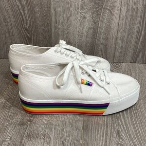 SUPERGA 2790 Rainbow Pride Platform Lace Up Canvas Sneakers 9.5