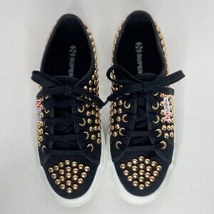 SUPERGA Black / Gold Studded Sneakers Size 6 NWOT!