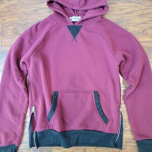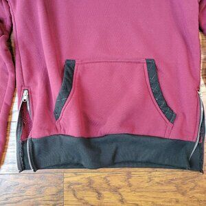 SUPERNOVA Dark Red Burgundy Black Trim Side Zip Pullover Hoodie sz M EUC Skater