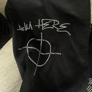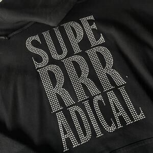 SUPERR RADICAL Black Silver Rhinestone Aim Hear Sweatshirt Hoody Large Bling