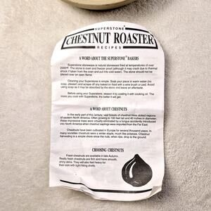 The SUPERSTONE Bake & Serve Sassafras is a vintage, original ceramic bakestone with a round shape and beige color. It comes with a lid and has been well-maintained, ready to be used for roasting chestnuts or garlic. The surface of the bakestone is also made of ceramic, adding to its durability and longevity. This item is a great addition to any kitchen and perfect for those who love to bake and cook.