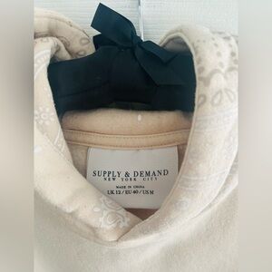 SUPPLY & DEMAND Paisley Hoodie - Cream/Tan, Boyfriend Fit, Sz M, Used Condition