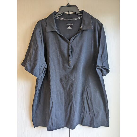 SUPREMA Essentials by Catherines Collared Short Sleeve Black Polo Top Size 0X