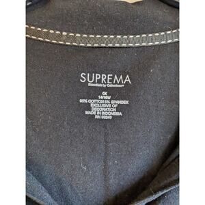 This SUPREMA Essentials by Catherines top is a classic addition to any wardrobe. In a size 0X, this black polo features a collared neckline and short sleeves, offering a timeless, polished look. The half-button placket adds a touch of versatility, allowing for easy adjustments in styling. Made from a blend of cotton and spandex, it provides both softness and a comfortable stretch. Perfect for casual or semi-formal settings, this top combines practicality with a sleek, sophisticated design.
