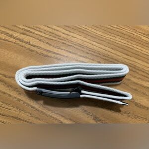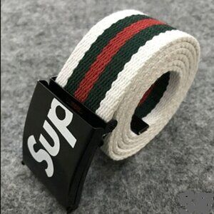 New belt, White, Deep green and red Striped in color