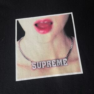SUPREME Girl Necklace Lips Black Tee Shirt Large Graphic Tee