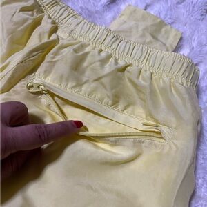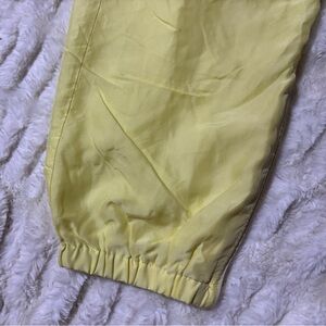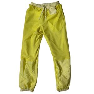 In Excellent Pre Owned Condition SUPREME Men’s Lemon Yellow Silk Sweat Pants Size: S Pants have white piping Water resistant nylon taslan with mesh lining. On seam hand pockets and single back zip pocket with zipper closure. Elastic cuffs and waistband with interior drawcord and interior hanging key pocket. Bottom gussets with zipper closure. 100% Silk
