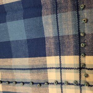 SUR LA TABLE Set of 4 Cotton Bead Trim Blue & White Plaid Placemats 20x20 India