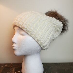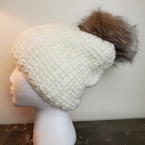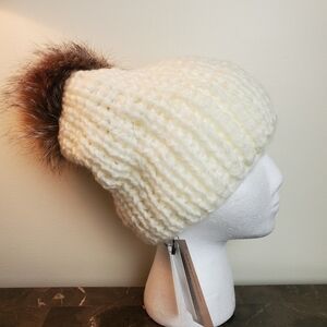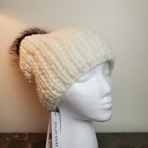SURELL Chunky Knit Beanie with fox fur pom NWT