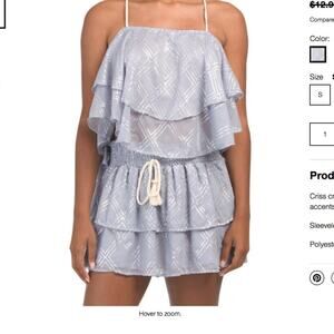 Criss cross back, tiered ruffle design, metallic accents, braided straps